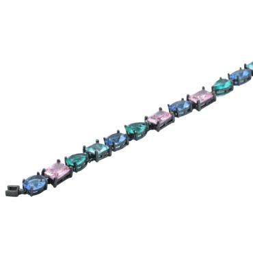 Vintage Mixed Gemstone 925 Sterling Silver Tennis Bracelet